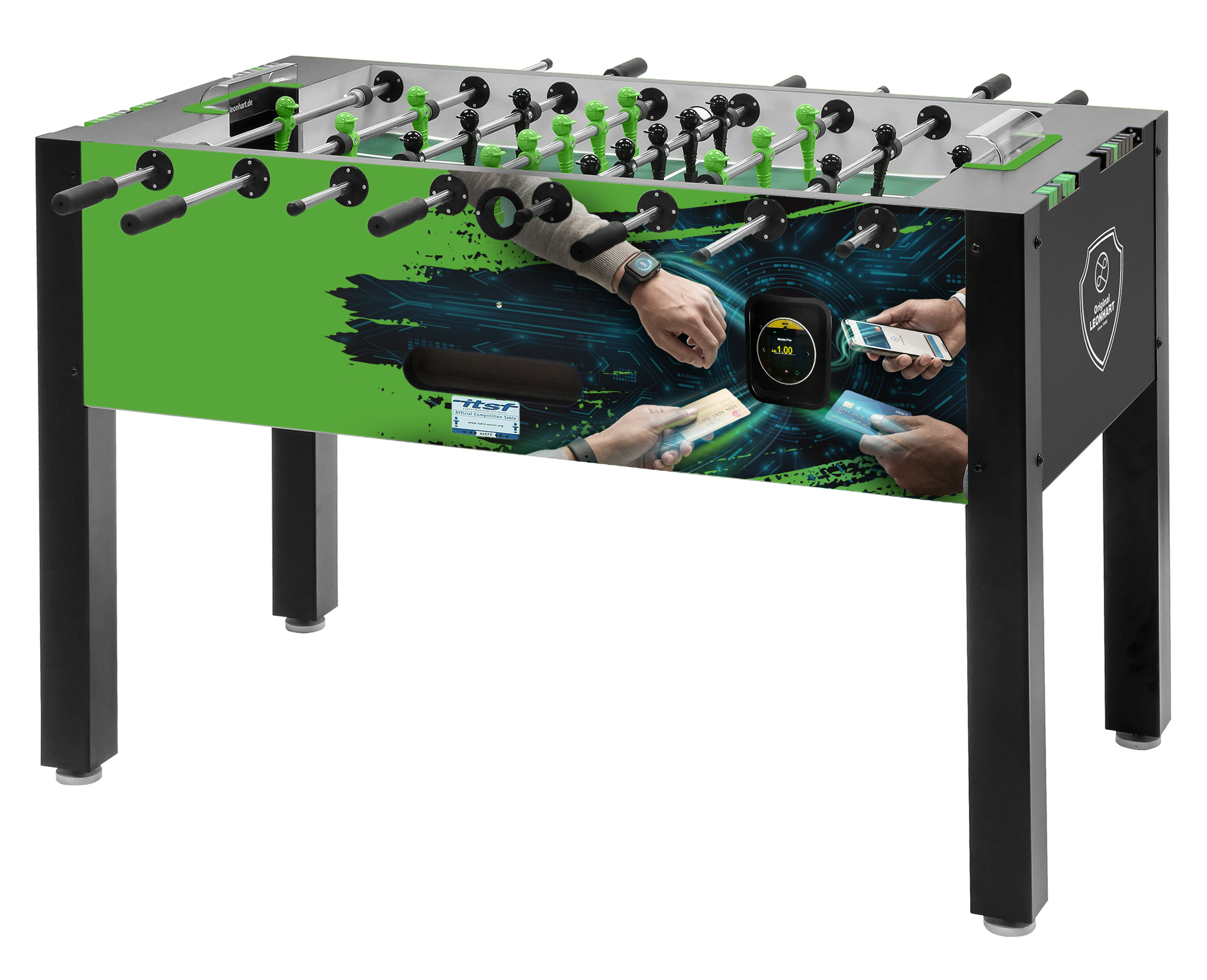 Beim Coin-Table gibt es keine Kompromisse. Wir verwenden in diesem Tischkicker die identischen Figuren wie im leo tournament. Diese sind extrem lange haltbar und perfekt zu spielen. Positiver Nebenefekt: Auch Turnierspieler werden deine Gäste sein.